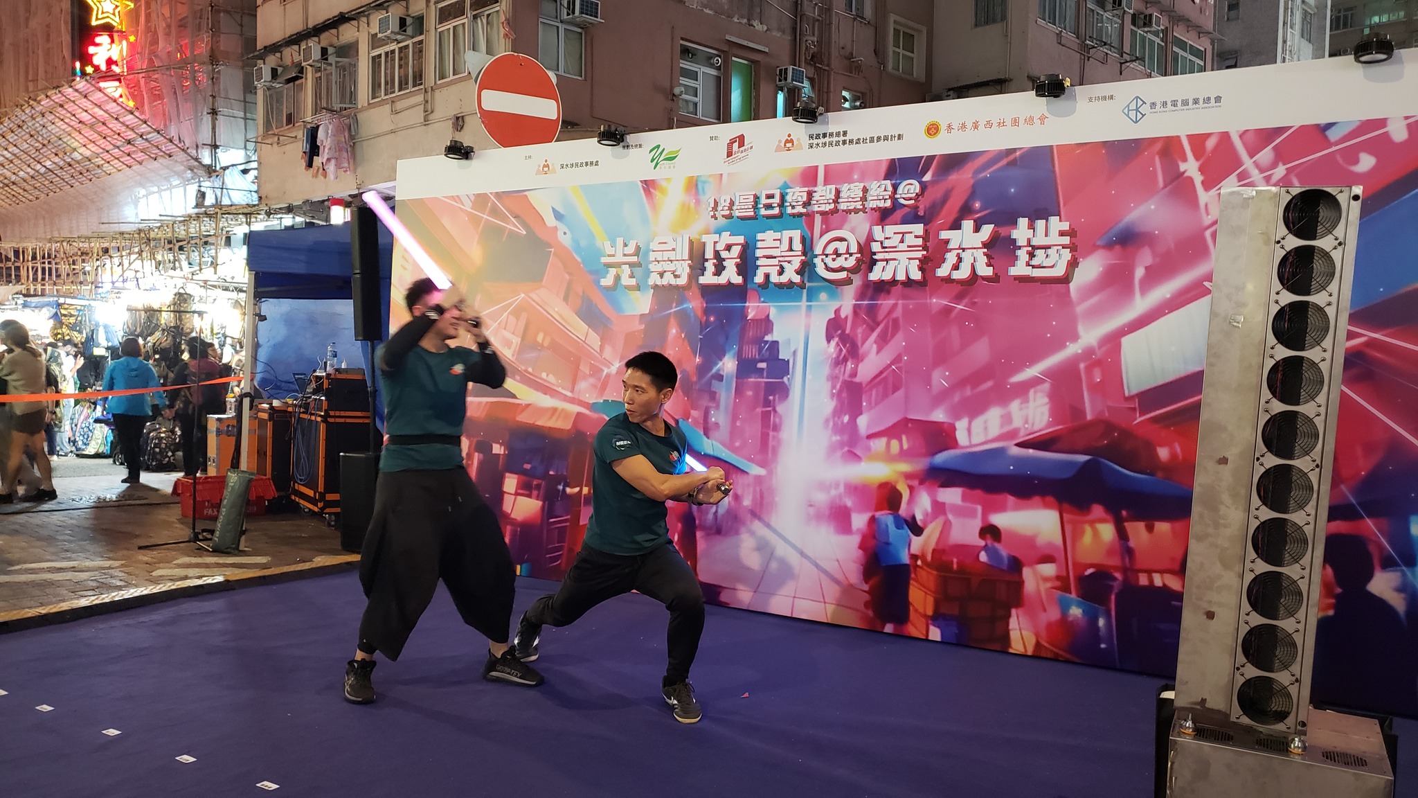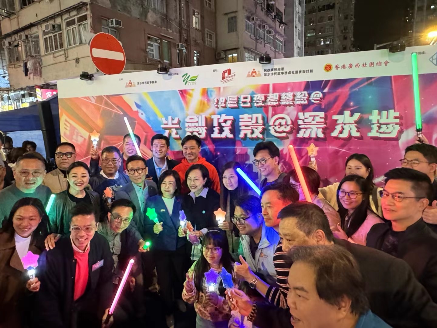 「青年議會」與「深水埗民政事務處」為支持「18區日夜都繽紛」合力舉辦「光劍攻殼@深水圳」,獲市民大讚,整個活動由福華街延伸到桂林街,突破性打造一條光影通道,並以1比1屏幕動畫作為裝飾,而「光劍攻殼@深水圳」同場舉行「玩.食.腦」市集,亦加入了其他娛樂特色,包括光劍體驗、LED躍動格子、全息影工作坊、VR遊戲以及發光棉花糖等。
